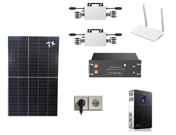 2,8kW mit Speicher 7x (400-410)wp 2,5kWh LiFePO4 Lithium Batterie Wechselrichter HM1500+1200