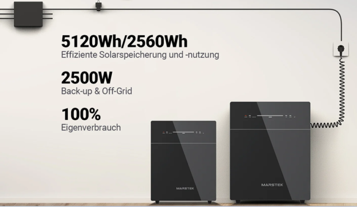 Marstek Venus C mit 2,56kWh LiFePO4 pur AC Speicher ist gleichzeitig Netzfähig, 2,5kW AC Input / 800W Netz AC Output mit Nulleinspeisung Funktion, 2,5kW AC Notstrom Ausgang, IP 65 für Außenbereich geeignet. Plug & Play, bequem Steuerung per APP, 10 Jahre Herstellergarantie.